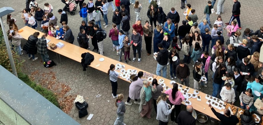 月26日(金)、インターカルチュラル・ウィークを記念して、今年も校庭で料理市が開かれた。保護者や生徒たち、特にグロナウのアラム/シリア正教会コミュニティの協力と準備のもと、様々な国の美味しい料理が提供されました。1ユーロというわずかな寄付で、学校関係者は舌鼓を打ち、世界各国の料理を味わうことができただけでなく、豊かな食卓を囲むことができない他の人々を助けることもできた。より正確には、寄付金はグロナウのフードバンクに寄付される。