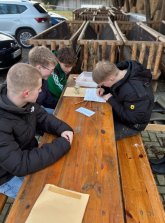 プロジェクト2日目、私たちの作業は教室から屋外へと移った。その目的は、水というトピックを理論的に見るだけでなく、グロナウの現場で直接調査し、体験することだった。教師のアダムスキー先生と一緒に、私たちは町を歩いた。様々なステーションに立ち寄り、それぞれの場所や、この地域の水にとっての意義について詳しく調べた。アダムスキー先生とマックスは、それぞれの場所の特徴を説明し、水の開発と利用についての追加情報を教えてくれた。