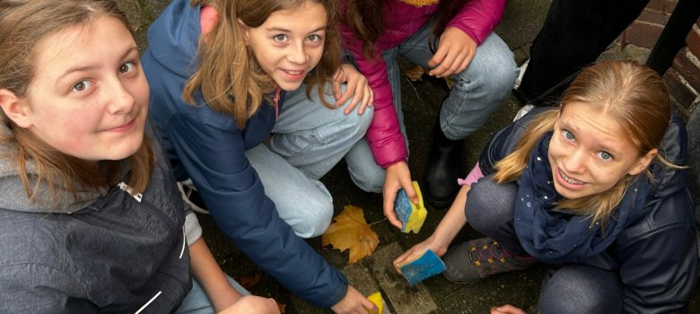 Equipados com baldes, esponjas e verniz, os alunos puseram-se a limpar as Stolpersteine. A propriedade classificada foi um centro de resistência política durante a era nacional-socialista e alberga atualmente sete Stolpersteine. Os alunos também puderam participar com a ajuda de uma aplicação, deixando uma vela digital nas antigas casas dos residentes de Gronau.