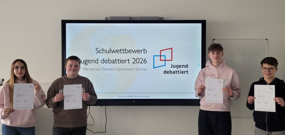 Maximilian Fortkamp och Noah Feldhues kommer att representera vår skola vid den regionala tävlingen den 18 februari, som också kommer att äga rum på vår skola och där de bästa debattörerna från de omgivande skolorna kommer att tävla mot varandra. Vi håller tummarna för dem båda inför den regionala tävlingen!" (Hse)
